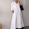 ELEGĂNS V-nyakĂș szabĂĄs - Ez az alkalmi V-nyakĂș nĆi ruha kifinomult Ă©s sokoldalĂș szabĂĄssal rendelkezik, amely eleganciĂĄt kölcsönöz a mindennapi ruhatĂĄradnak. Ez a kialakĂtĂĄs nemcsak a nyakkivĂĄgĂĄst hangsĂșlyozza, hanem karcsĂșsĂtĂł hatĂĄst is biztosĂt, amely kiemeli a termĂ©szetes sziluettet.