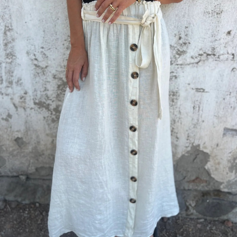 Csomag tartalma: 1×hosszú szoknya elülső gombokkal és övvel