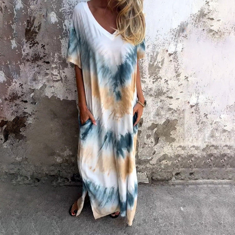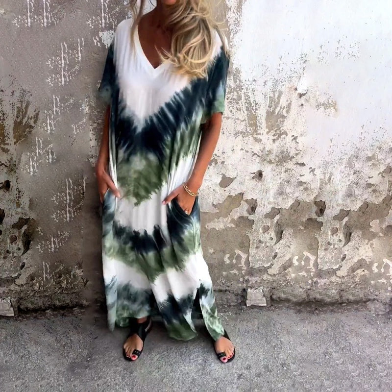 1 * Alkalmi laza, nyomtatott V-nyakĂș hosszĂș ruha