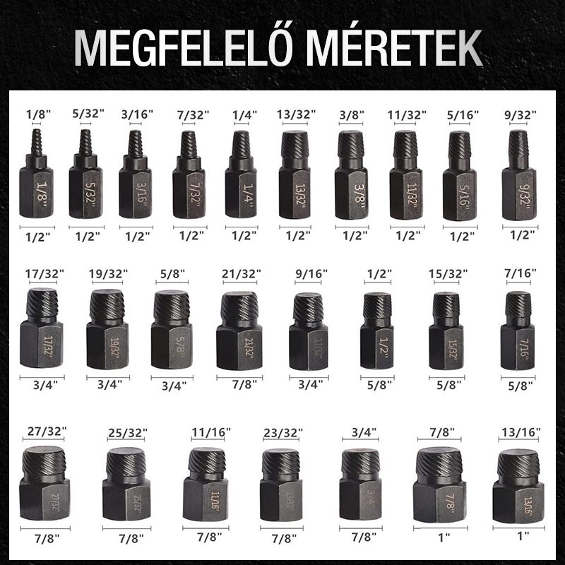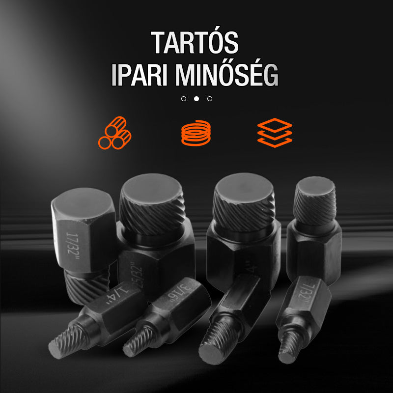 Kihúzószettjeink megkönnyítik a törött csavarok, csavarok, csavarhüvelyek és szerelvények hatékony kihúzását.