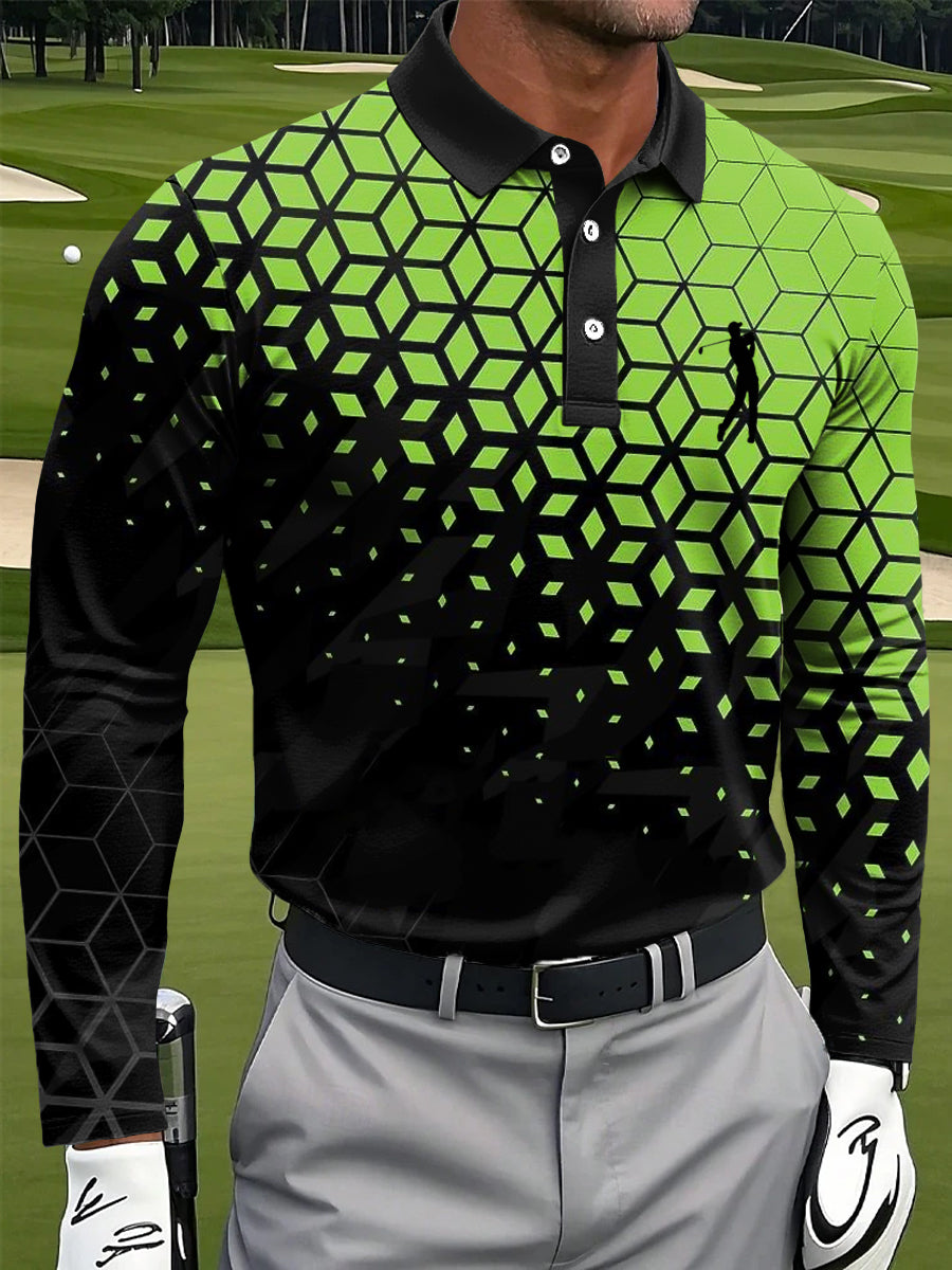 Férfi absztrakt gradient geometriai nyomtatás alkalmi üzleti hosszú ujjú póló