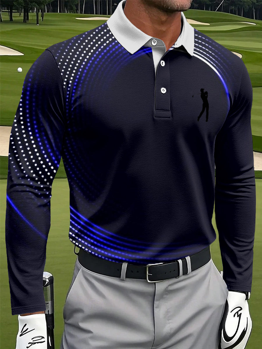 Férfi absztrakt gradient polka dot nyomtatás alkalmi üzleti hosszú ujjú póló