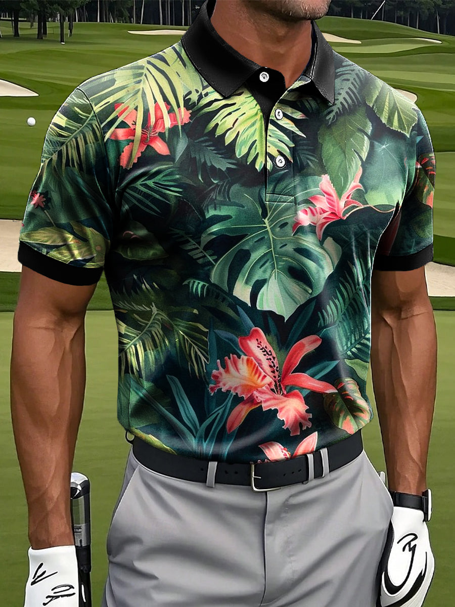 Férfi hawaii virág pálmalevél művészeti nyomtatás alkalmi üzleti póló