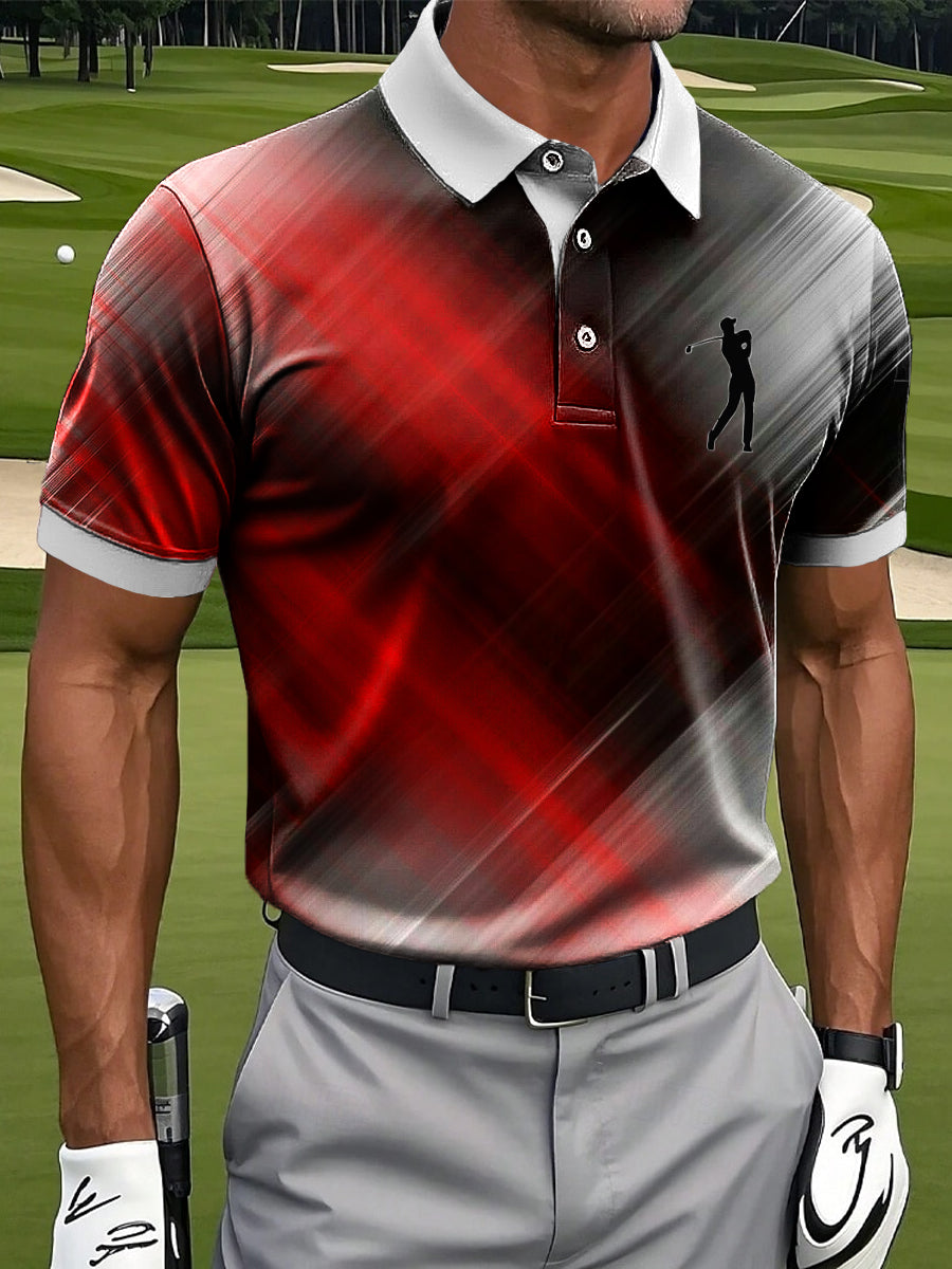 Férfi retro absztrakt gradient kockás művészet nyomtatás alkalmi üzleti póló