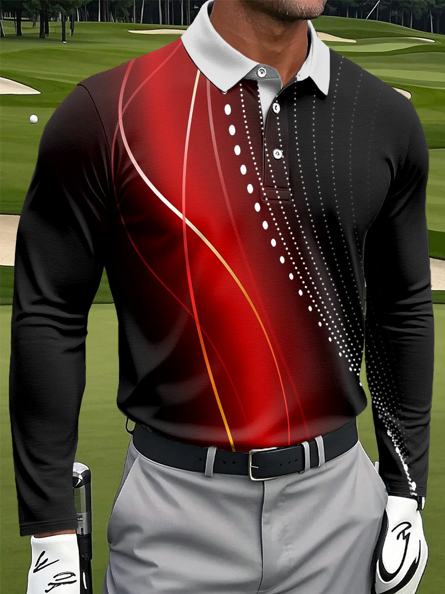Férfi retro csíkos texturált nyomtatás alkalmi üzleti hosszú ujjú póló