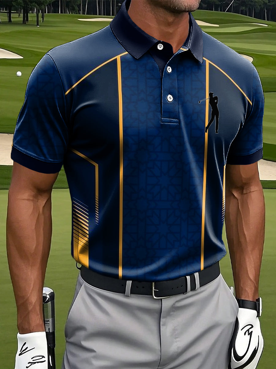 Férfi retro geometriai patchwork nyomtatott alkalmi üzleti póló
