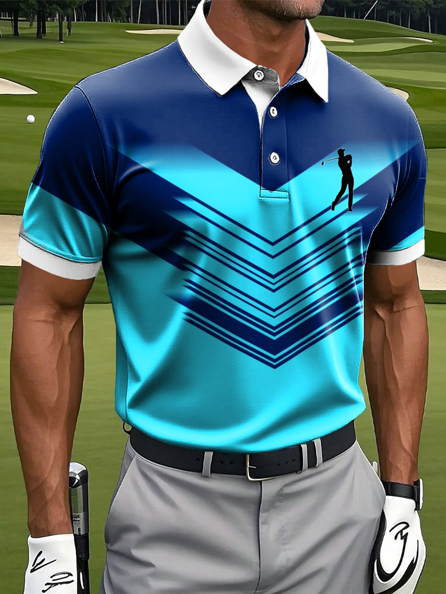 Férfi retro gradient geometriai színes blokk művészeti nyomtatás alkalmi üzleti póló
