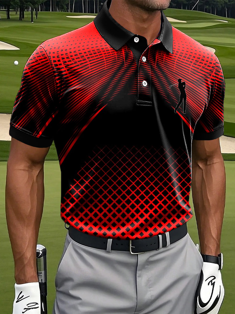 Férfi retro gradient geometriai totem nyomtatás alkalmi üzleti póló