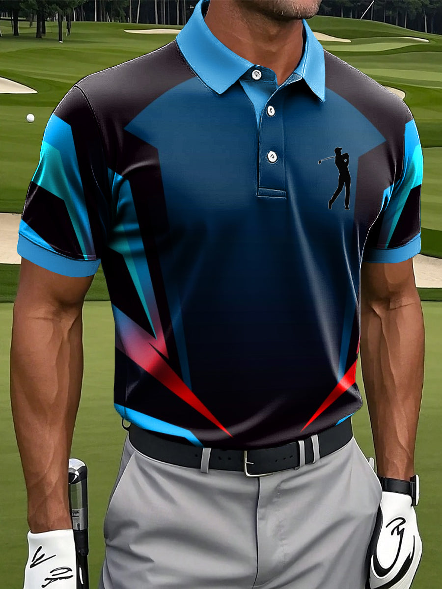 Férfi retro szimmetrikus vonalak művészi nyomtatás alkalmi üzleti póló