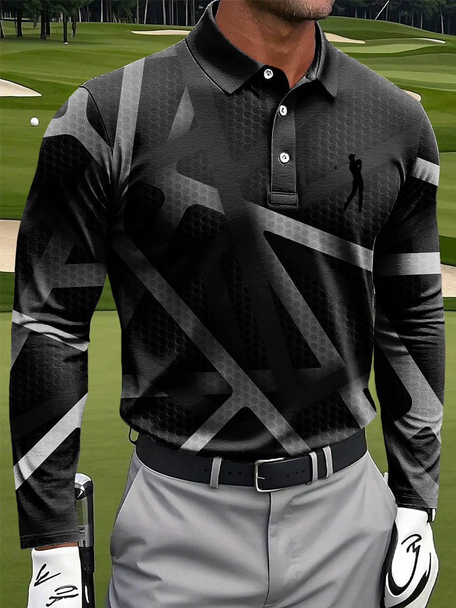 Férfi retro vonal textúra nyomtatás alkalmi üzleti hosszú ujjú póló
