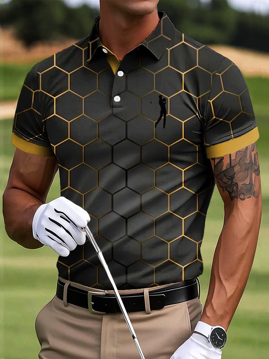Férfi vintage gradient arany geometriai művészet nyomtatás alkalmi üzleti póló