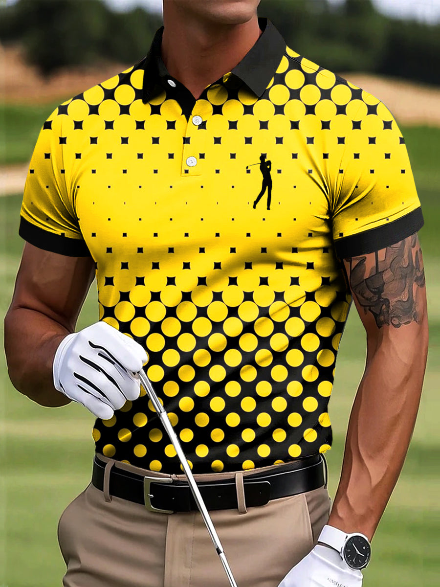 Férfi vintage gradient polka dot art nyomtatás alkalmi üzleti póló