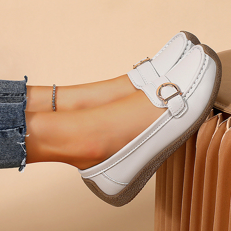 ELEGÁNS TERVEZÉS - Elegáns, lekerekített orrú és minimalista csatos kialakítással, ezek a papucsok zökkenőmentesen ötvözik az alkalmi kényelmet az elegáns kifinomultsággal. A könnyű szerkezet egész napos kényelmet biztosít, miközben megőrzi a szerkezeti stabilitást, így tökéletes választás a könnyed stílushoz, az elegancia megalkuvása nélkül.