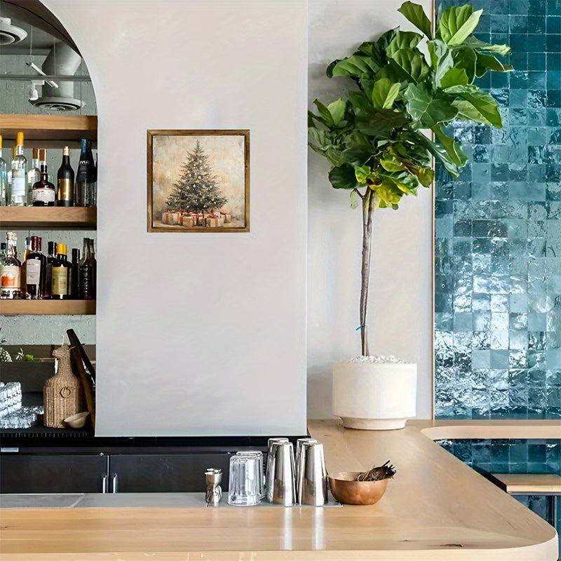 VINTAGE KARÁCSONYI MŰVÉSZETI MŰ - Időtlen, ünnepi varázst kölcsönöz otthona berendezésének. A klasszikus karácsonyfa jelenet meleg, nosztalgikus érzést kelt, és hangulatos, barátságos légkört teremt az ünnepi időszakra.