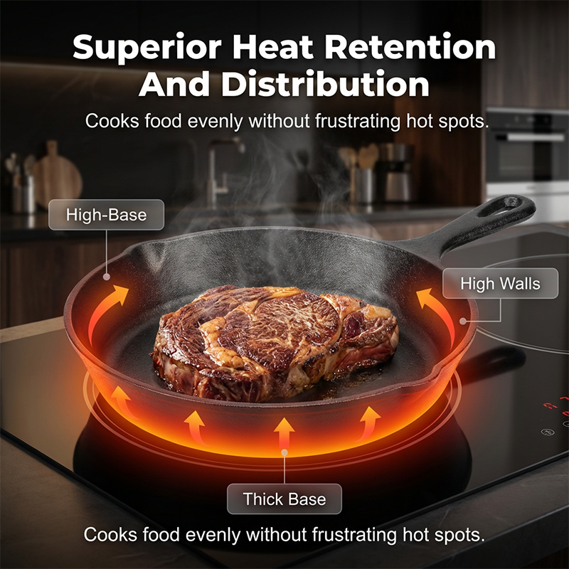 KIVÁLÓ HŐMEGTARTÓ KÉPESSÉG - Tapasztalja meg a páratlanul egyenletes sütési eredményt. Az öntöttvas anyag egyenletesen melegszik fel, és a tűzről levétel után is sokáig megtartja a hőt, így az ételek melegen maradnak, és minden alkalommal tökéletes pirítást biztosít.