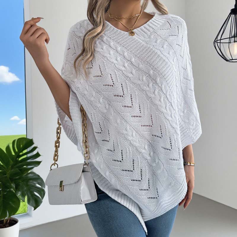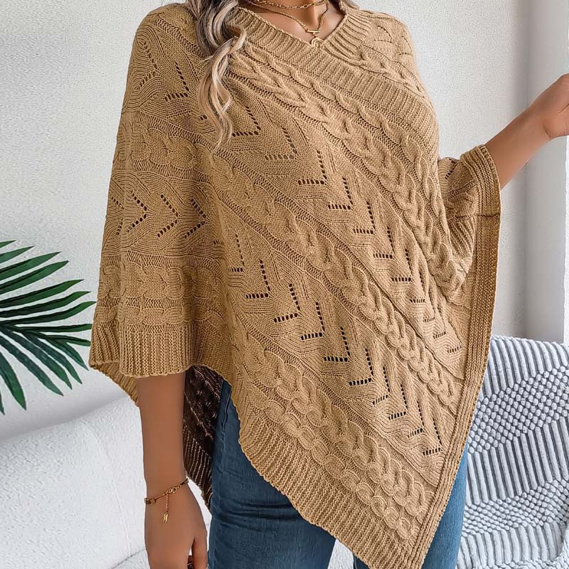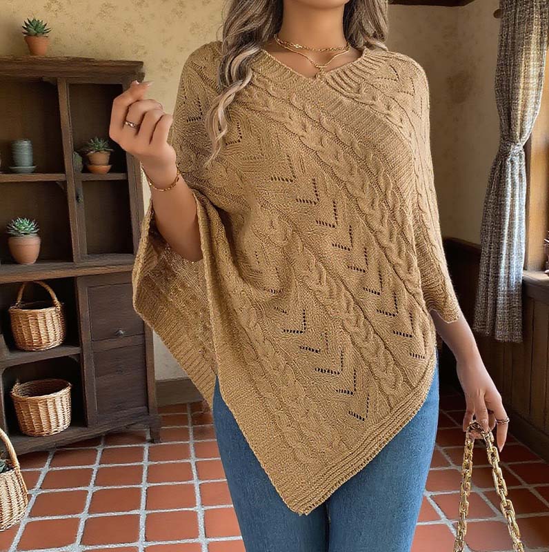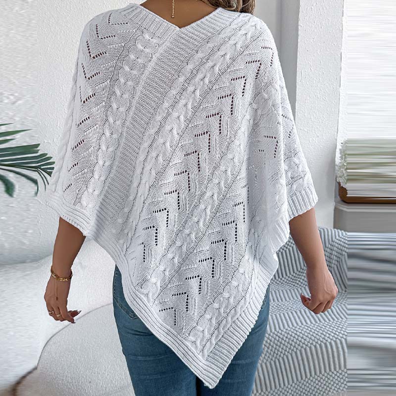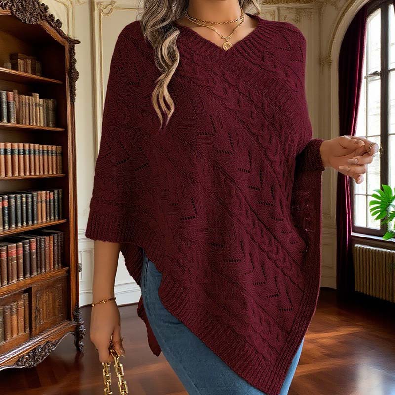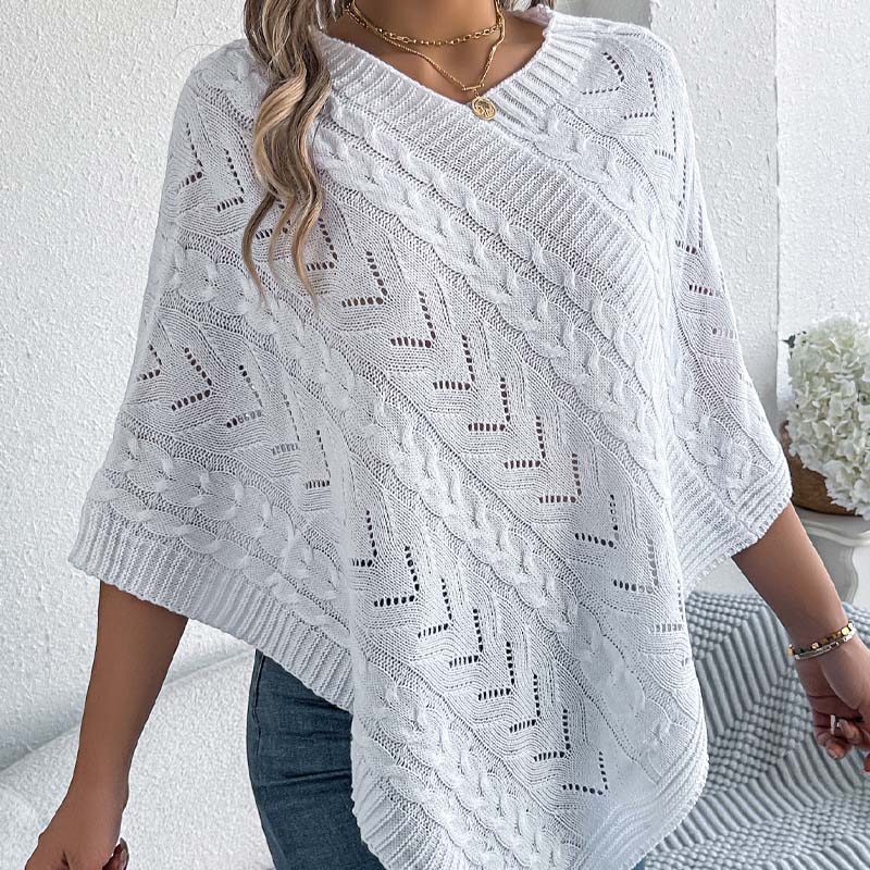 Női egyszínű, bő, V-nyakú kötött pulóver