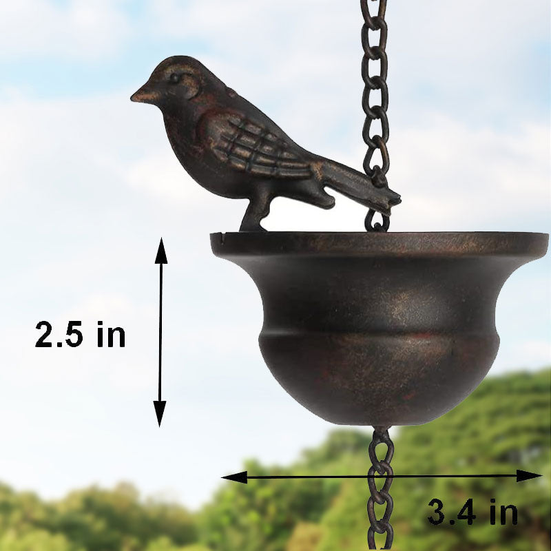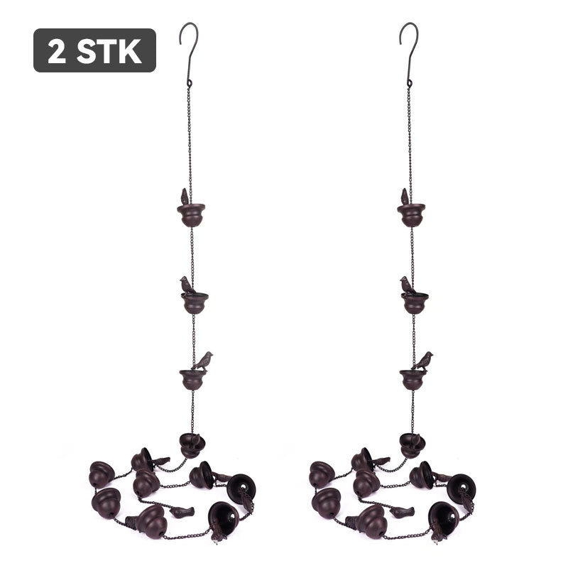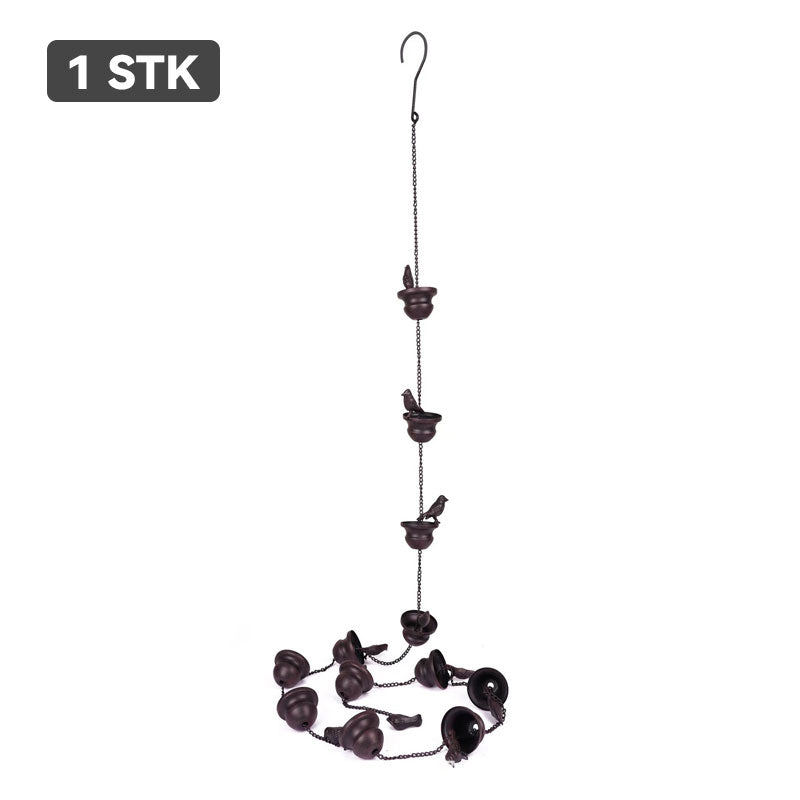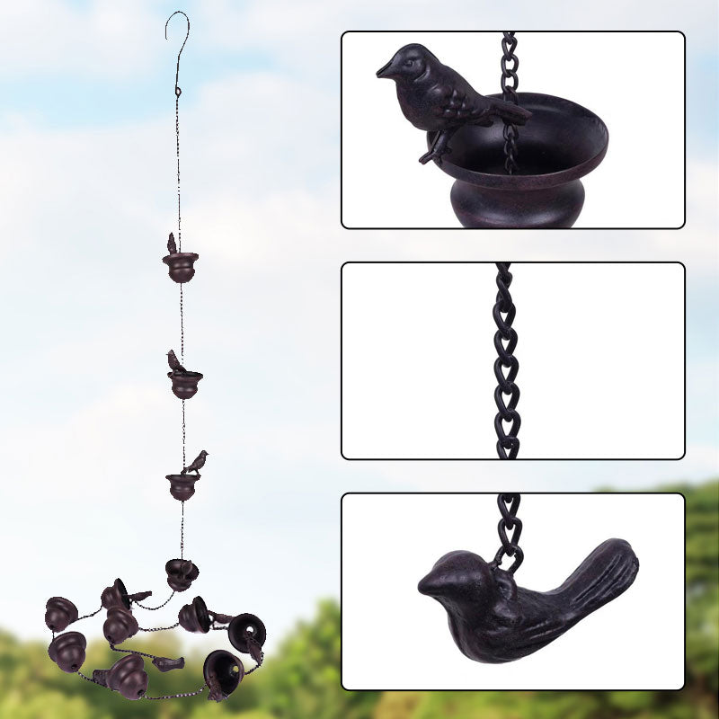 - Amikor a csapadékvíz a lánc mentén halad, egyik láncszemtől a másikig zuhan, és megnyugtató vízeséshatást kelt.