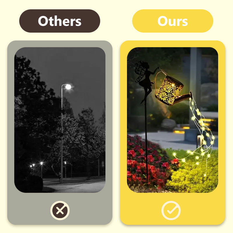 SZELLEMES KERTI VARÁZS: Ez a napelemes öntözőkanna lámpa varázslatos, mesés hangulatot varázsol kertjébe – mintha egy tündér világító cseppekkel öntözné a növényeit. Tökéletes módja annak, hogy csodát és hangulatot vigyen kültéri terébe.
