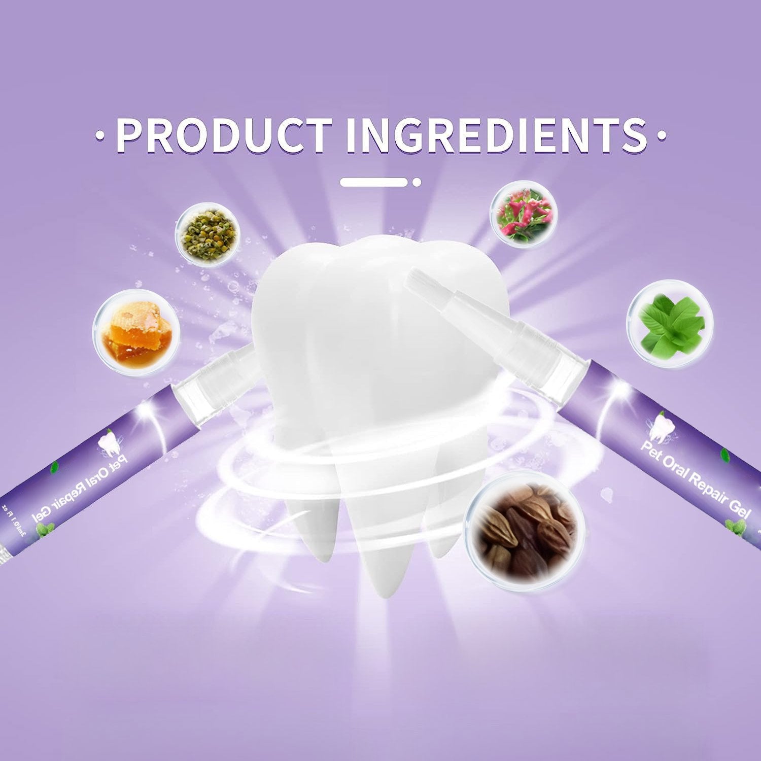 A Pet Oral Repair Gel alaposan kifehéríti a sárga fogakat, eltávolítja a fogakon felhalmozódott fogkövet, megoldja a foglepedéket, és átfogó és tiszta szájüregi élményt nyújt. Eltávolítja a rossz leheletet, enyhíti a fogérzékenységet, az ínyvérzést stb. Megoldja a fogérzékenységet és az ínyvérzést, helyrehozza az ínykárosodást és a visszahúzódó ínyt. Például: