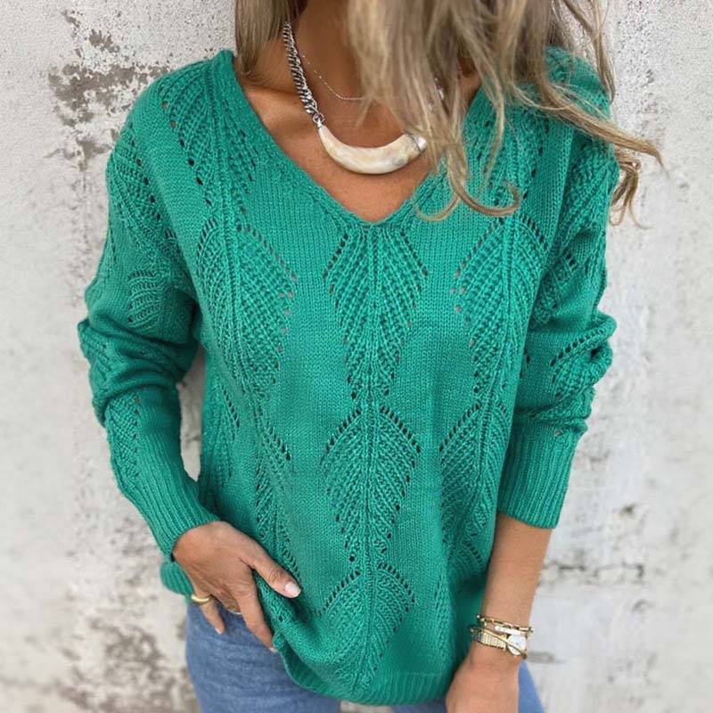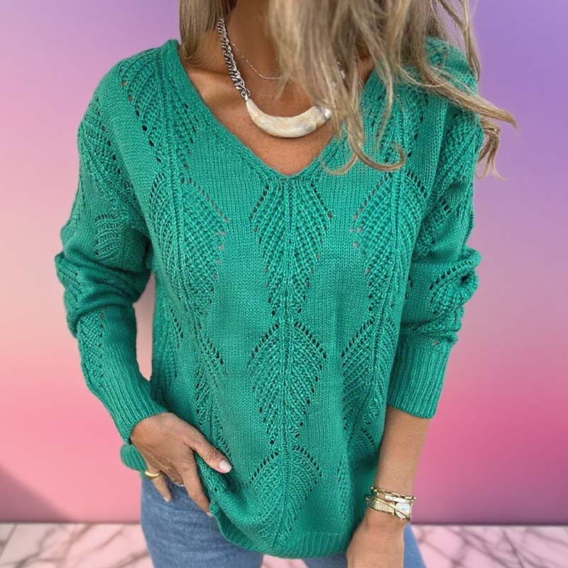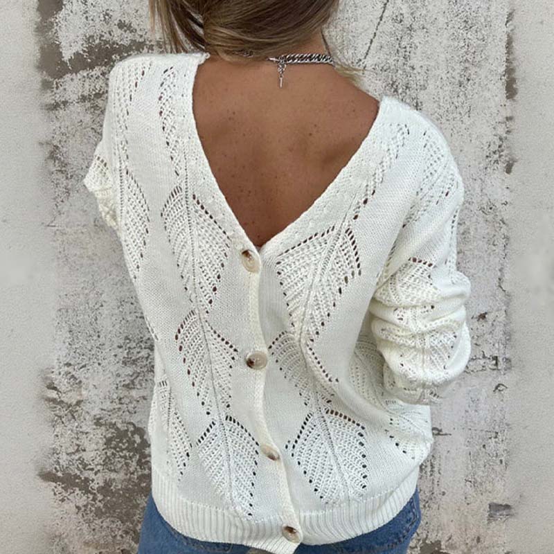 V-NYAKÚ, TÖKÉLETES KIVITELEZÉS - A előnyös V-nyakú kivitelezést finom gombok egészítik ki, amelyek hangsúlyozzák a pulóver kifinomult megjelenését. Ez a kombináció egyszerre kínál laza bájt és egy kis kifinomultságot, így ideális nyakláncokkal vagy önmagában viselve is.
