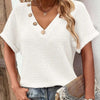 Nyakkivágás, rövid ujjú, gombok, laza szabás, egyszínű, egyszínű póló, kényelmes és aranyos női póló nyárra. Ez a kötött rövid ujjú póló tökéletes nyárra, őszre és tavaszra.