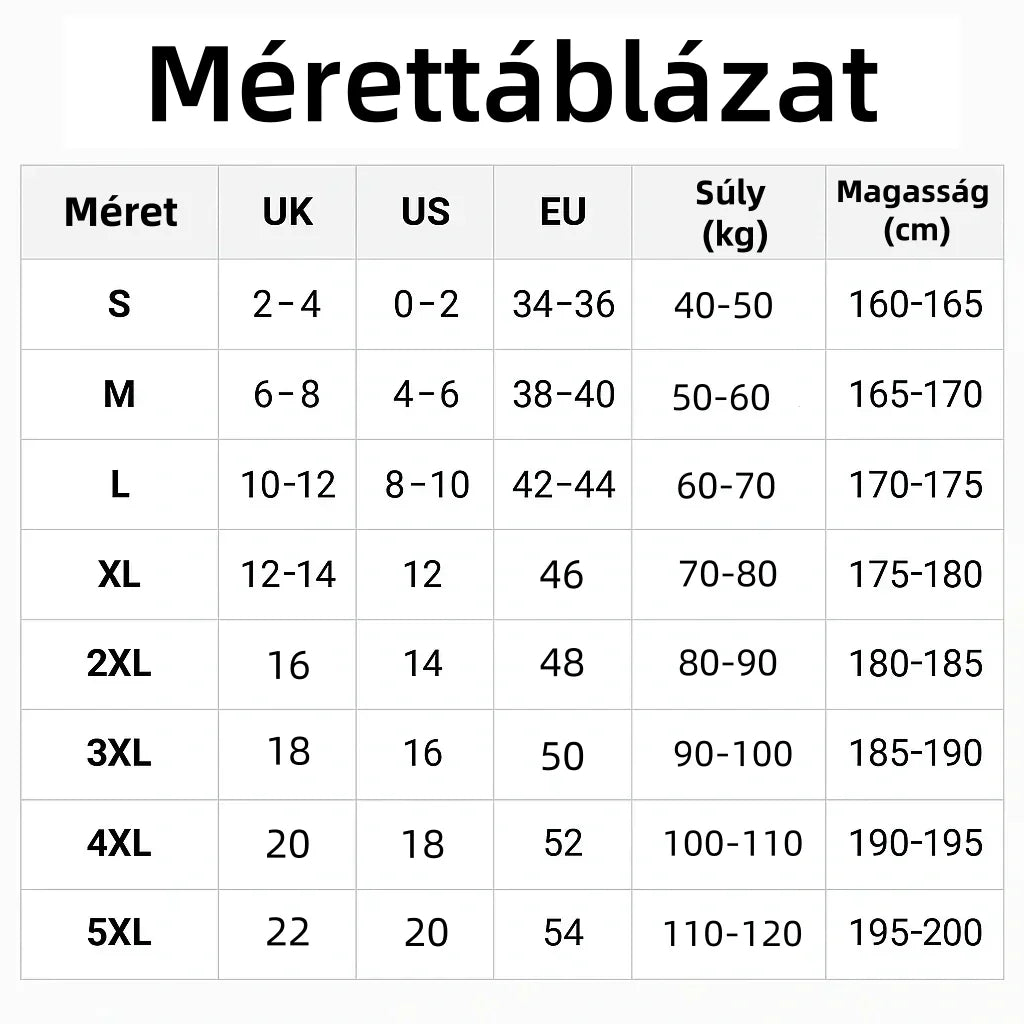 A megrendelés előtt ellenőrizze a mérettáblázatot, hogy a legjobb illeszkedést biztosítsa.
