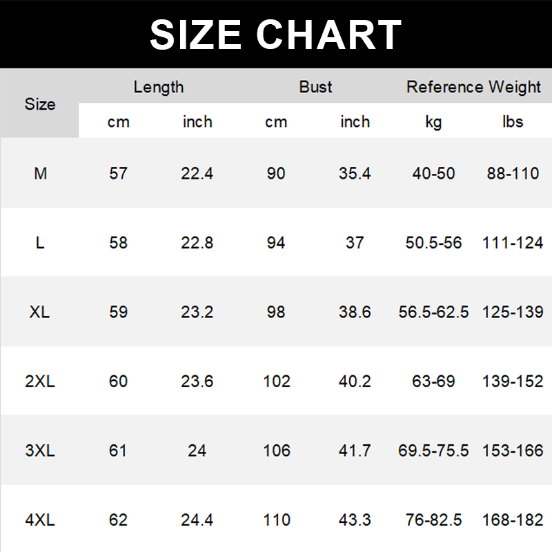 Méret: S, M, L, XL, 2XL, 3XL, 4XL