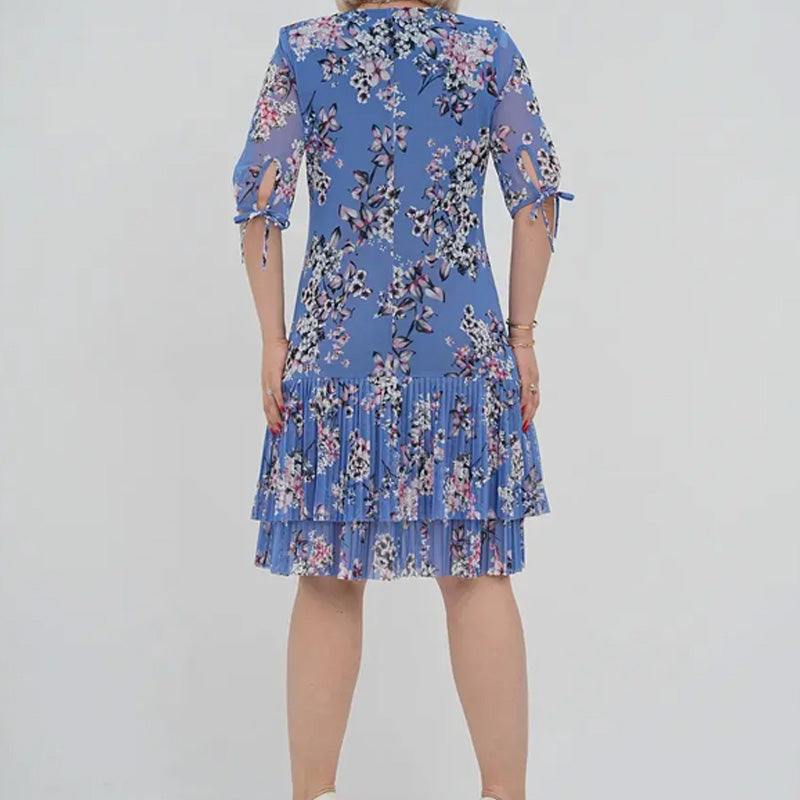 đčElegĂĄns sifon hosszĂș pliszĂrozott ruha rövid ujjakkal