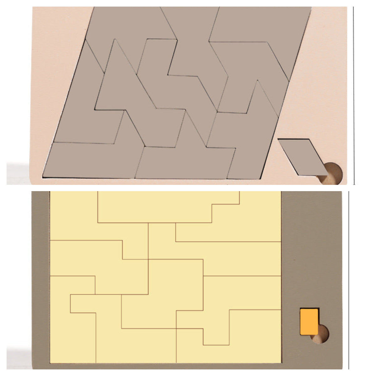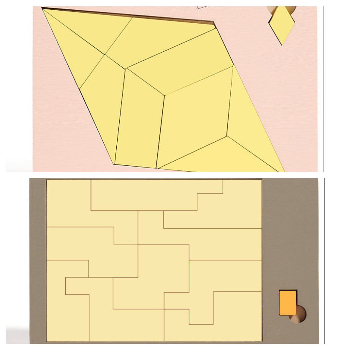 VARÁZSLATOS ILLESZKEDÉS AZ EXTRA DARABHOZ: A fa tangram lehetővé teszi, hogy még egy darab tökéletesen illeszkedjen, még akkor is, ha már tele van. Ez a tulajdonság további rejtélyt és izgalmat ad a játékhoz, arra készteti a játékosokat, hogy a nyilvánvalón túl is gondolkodjanak.