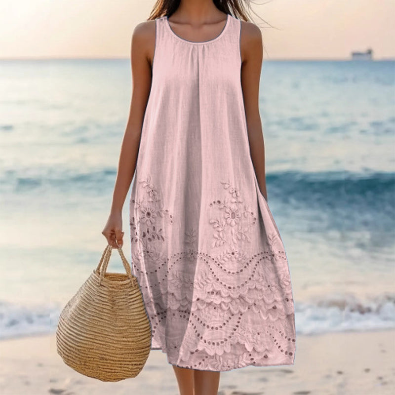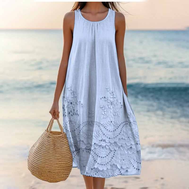 LAZA ÉS LÉDOGÓ SZILUETT - Laza, áramló sziluettje sokféle testalkathoz illik. A kerek nyakkivágás és a térd fölé érő hossza kiegyensúlyozott és stílusos megjelenést kölcsönöz erőfeszítés nélkül.